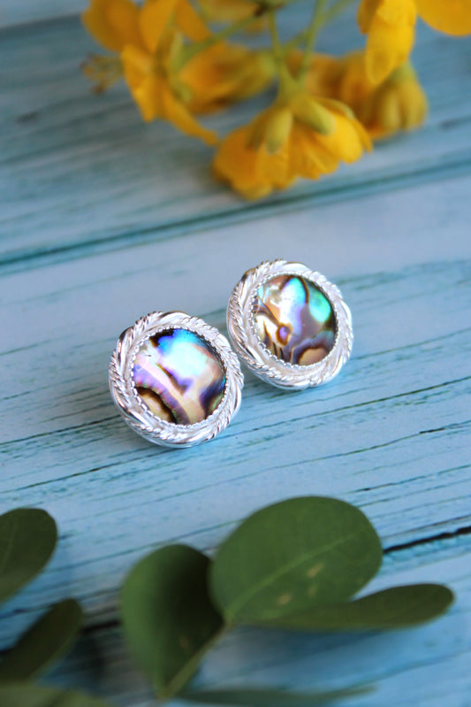Abalone Shell Twist Wire Sterling Silver Earrings