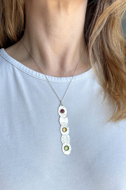 Traffic Light Necklace with Garnet, Citrine, and Peridot