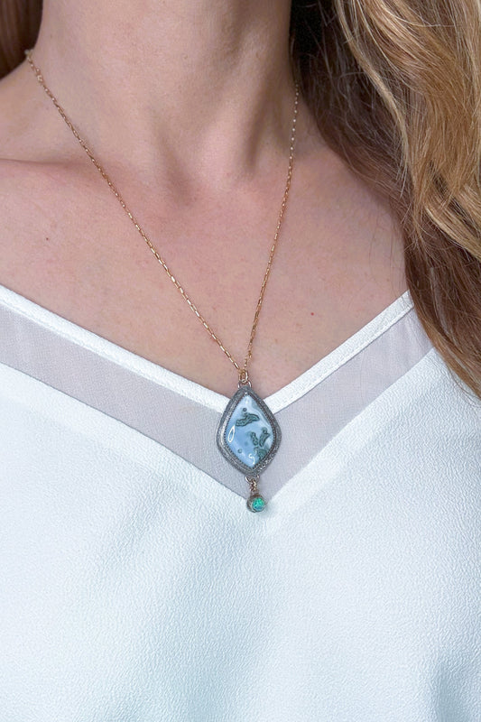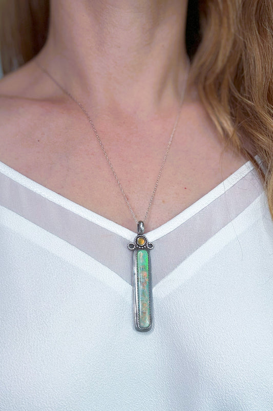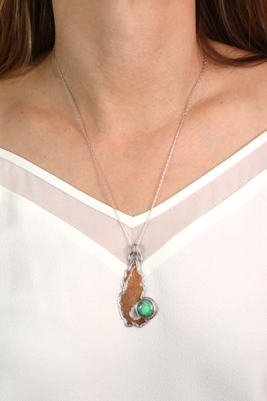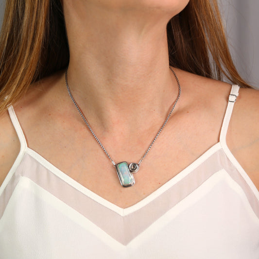 Monarch Opal and Natural Opal Sterling Silver Necklace