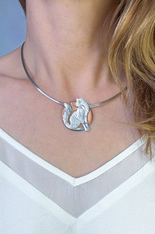 Fox and the Moon | Hand-Pierced Sterling Silver and Copper Pendant Necklace
