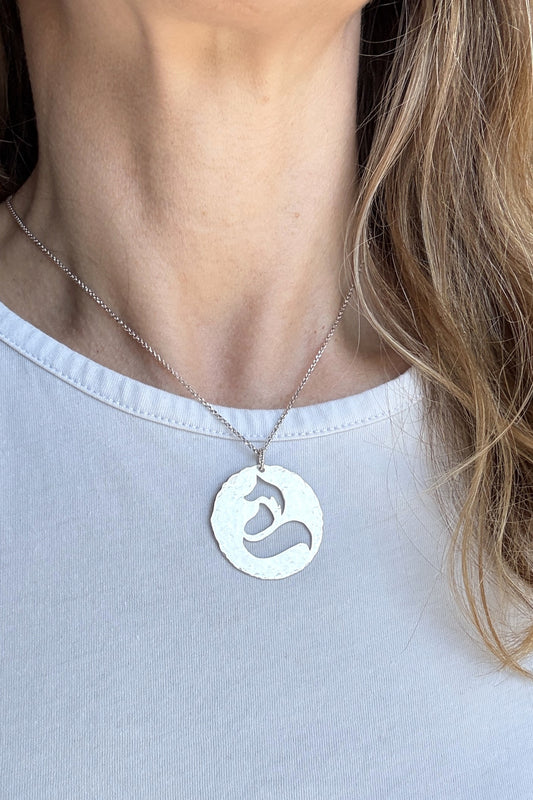 Fox Silhouette | Hand-Pierced Sterling Silver Circle Pendant Necklace
