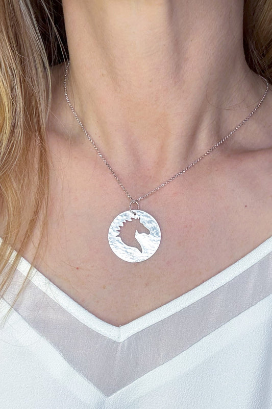 Horse Silhouette | Hand-Pierced Sterling Silver Circle Pendant Necklace