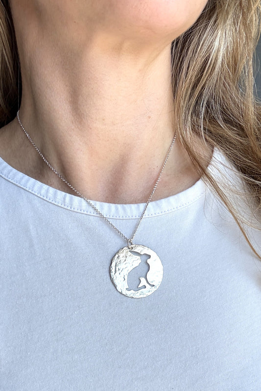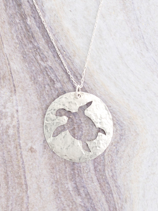Sea Turtle Silhouette | Hand-Pierced Sterling Silver Circle Pendant Necklace